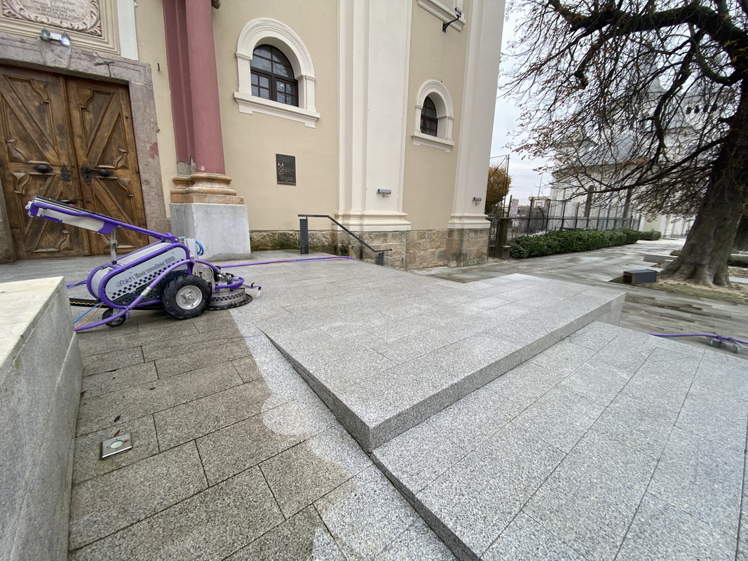 Hidrosablarea oferă pavajelor un aspect curat și îmbunătățește durabilitatea lor.